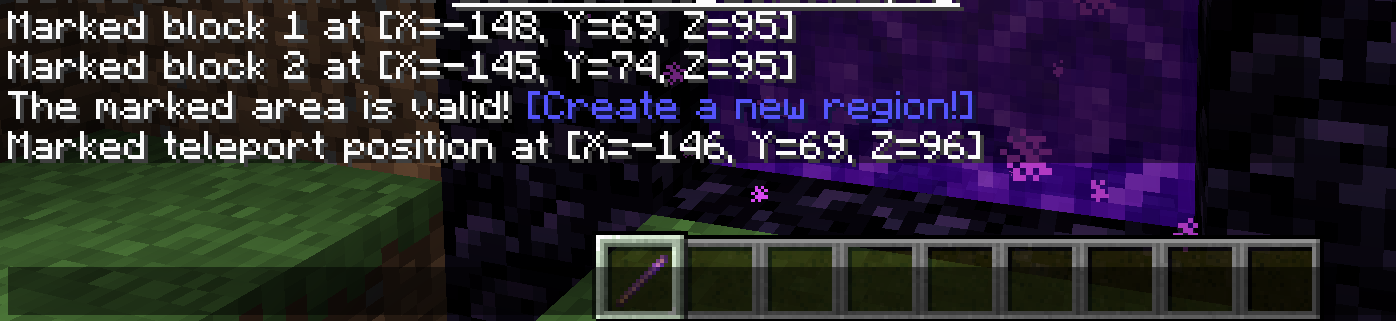 When marking blocks, the RegionMarker name will change and indicate a valid area in the chat.